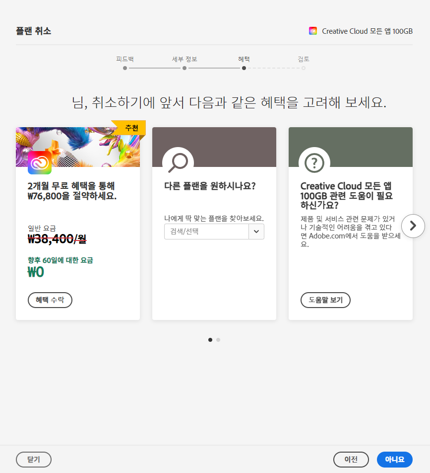 어도비 탈퇴 시도 및 무료혜택 받는 방법