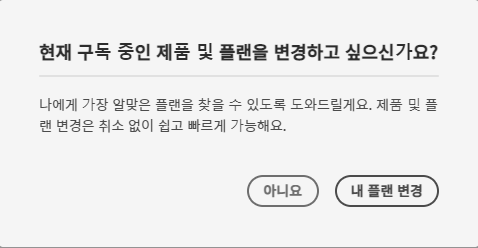 이러면 '플랜 변경'으로 유도하는 팝업창이 뜹니다. '아니요'버튼을 눌러주세요.